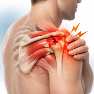などが原因で腱板に負担がかかると、炎症や損傷が起こり肩の痛みや可動域の制限が起こります。
